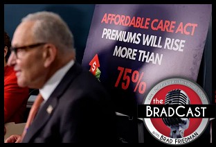 On today's BradCast: Republican insistence on skyrocketing health care costs for tens of millions of Americans as of January 1 continues to keep much of the federal government closed for a second day. But it hasn't prevented Trump's ICE thugs from dragging American citizens, including women and children, out of their beds and into the streets naked in the middle of the night. [Audio link to full show follows this summary.]
