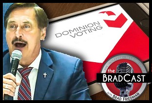 Okay. Now it's not just insane. It could also be criminal, as a leak of actual voting system software at MyPillow CEO Mike Lindell's three-day, so-called "cyber symposium" in South Dakota may have imperiled the security of the Gubernatorial Recall election now under way in California. We've got some exclusive details on today's BradCast. [Audio link to full show is posted below this summary.]
